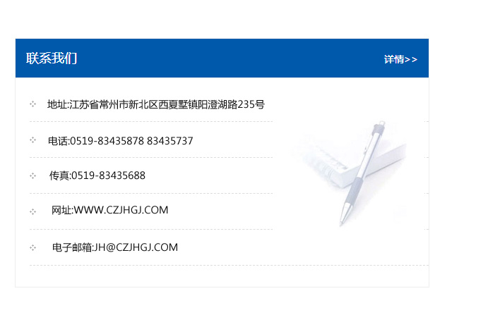 地址:常州市新北區友邦商務大廈1幢16、17層  電話:0519-85101652  傳真:0519-85112595  郵編:213022  網址:www.cz-jiayue_cn.avictj.com  郵箱:xiajifengaa@163.com